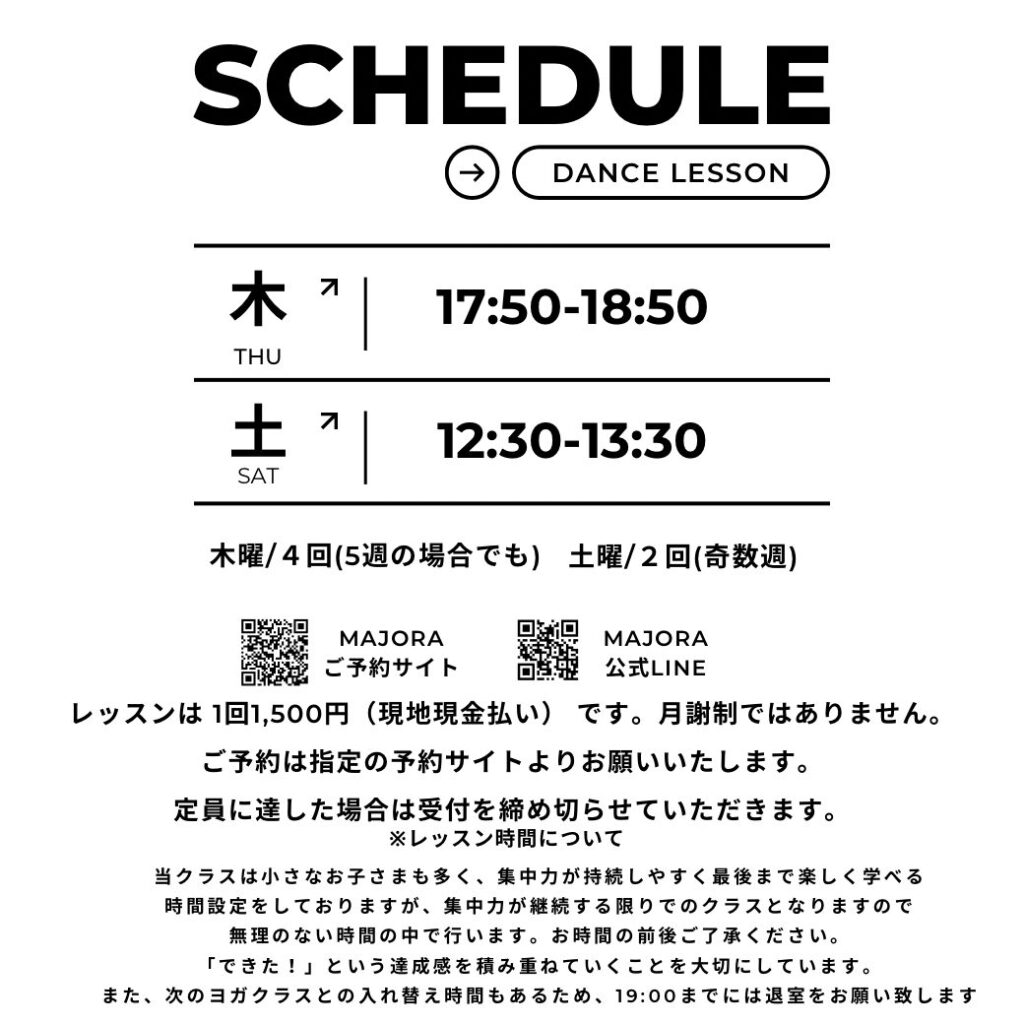まずは踊る楽しさを知ってもらってからダンスの基礎も取り入れてどんどん色んなダンスに挑戦していければと思います!